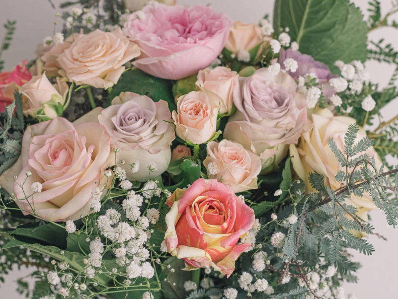 Paper Wrap – We will include a water pack around the stems, then wrap your bouquet in plush white tissue and a florists choice of either white, brown or black paper