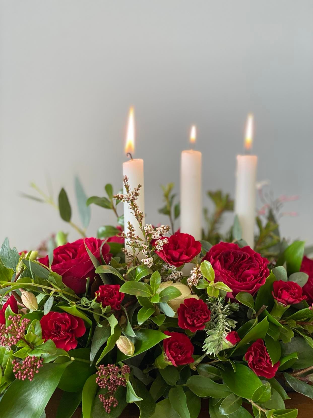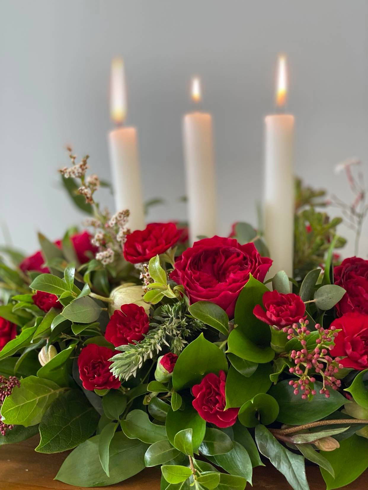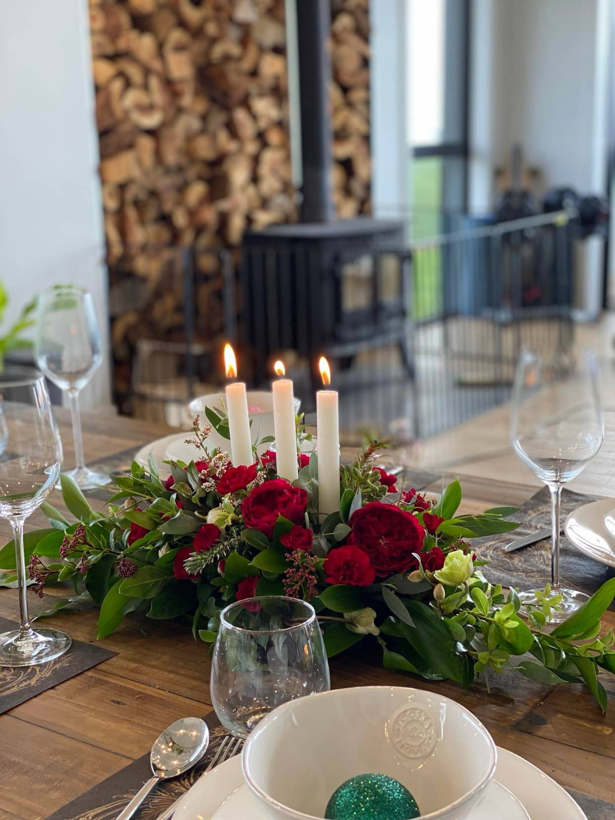 The Christmas Magic Table Arrangement is a beautiful selection of NZ Grown flowers perfect for your dining room table this Christmas designed by our talented florists